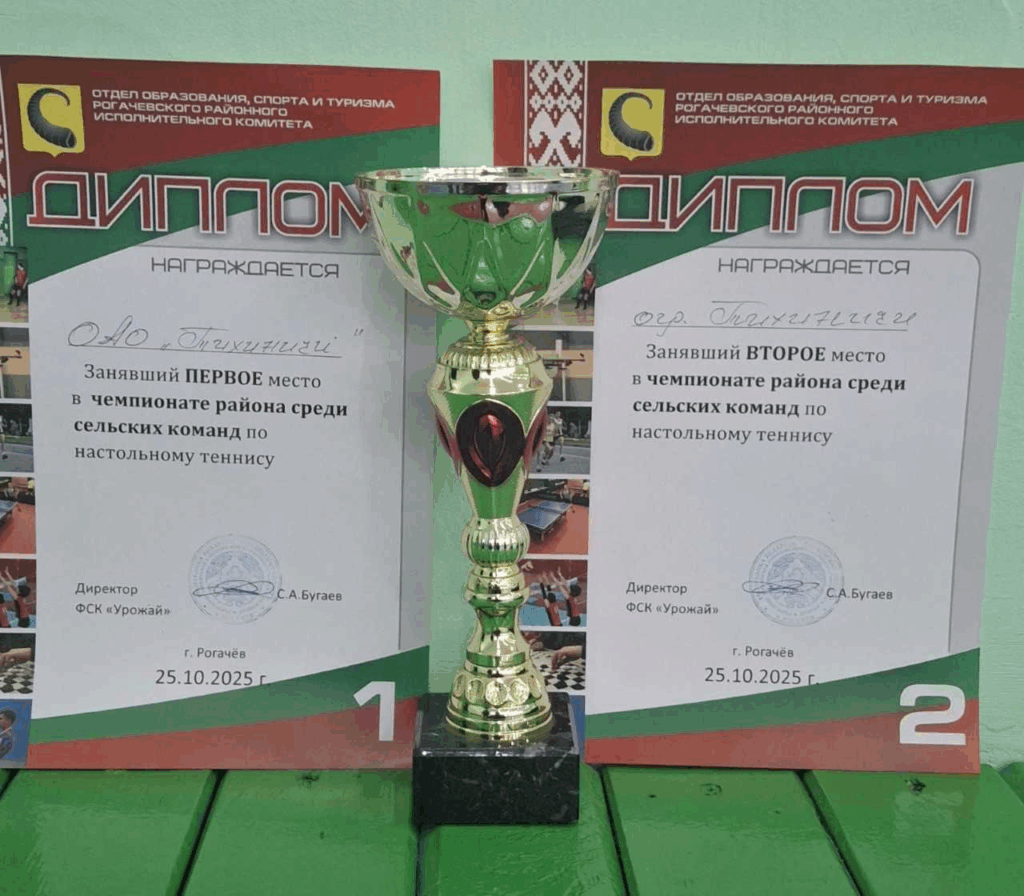 В подтверждение этих постулатов 27 октября в г. Рогачеве состоялись районные соревнования по настольному теннису между сельскими командами, среди которых участвовали команды ОАО «Тихиничи» и агрогородка Тихиничи.