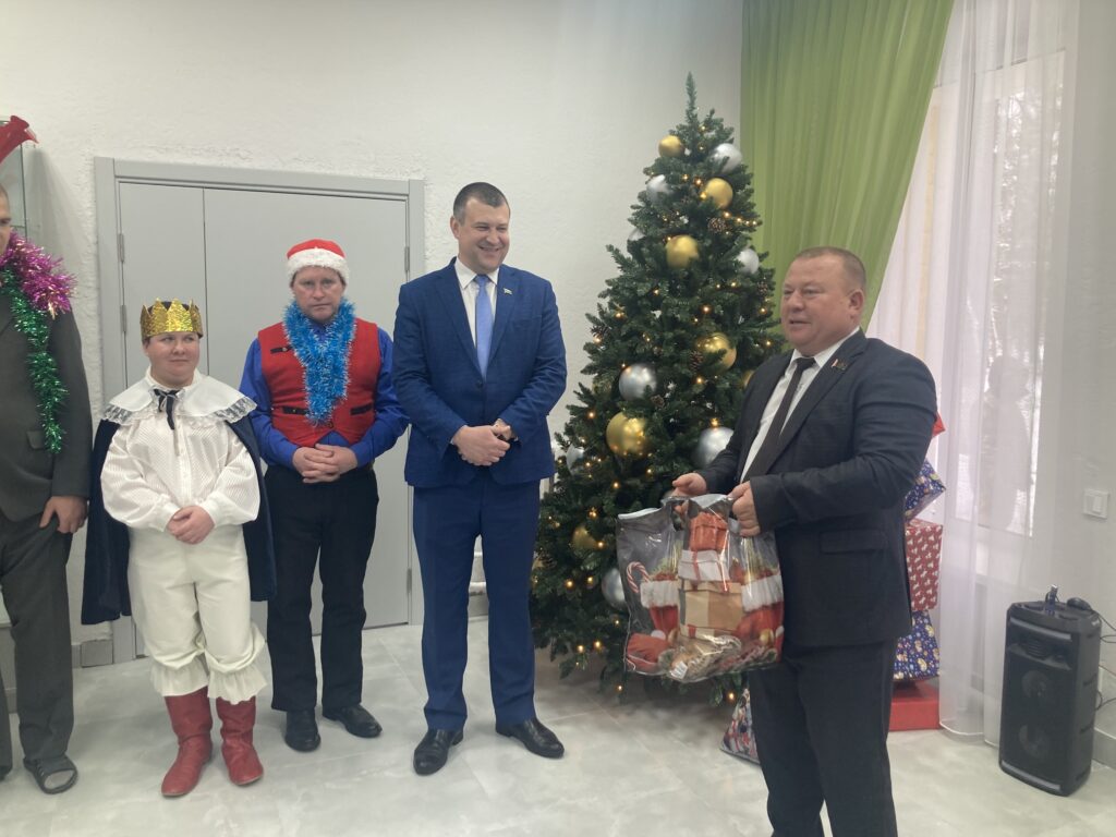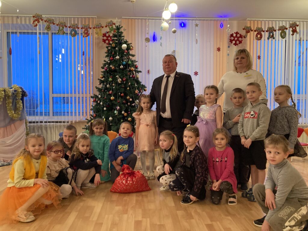 Сенатор принял участие в новогодних праздниках, организованных ребятами и пожелал всем счастливых праздников и благополучного Нового года, отметив, что в нашей стране большое внимание уделяется детям и всем категориям белорусов, о чем подтверждают благотворительные акции «Наши дети» и «От всей души».